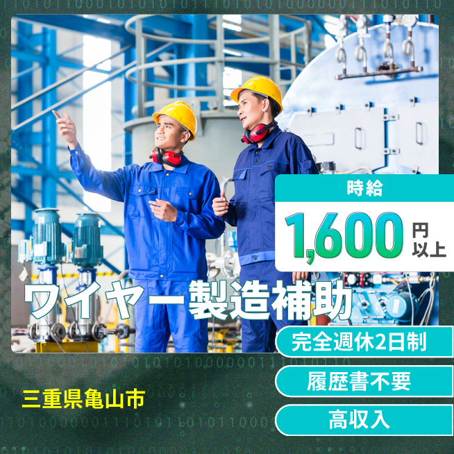 給与詳細 月収例 267,200円 時給例 1,670円 勤務地 三重県亀山市 仕事内容 ワイヤーの製造などをお任せします。ベテランの社員さんがイチから丁寧に教えて下さるので安心♪