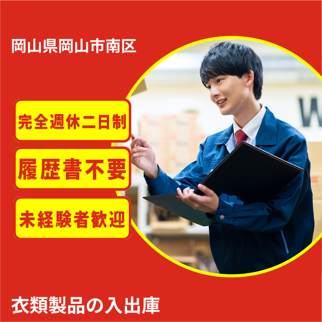 給与詳細 月収例 184,000円 時給例 1,150円 勤務地 岡山県岡山市南区 仕事内容 衣類製品の入出庫作業&セット作業のお仕事です!経験はいりません。気兼ねのいらない職場なので安心してスタートできます★
