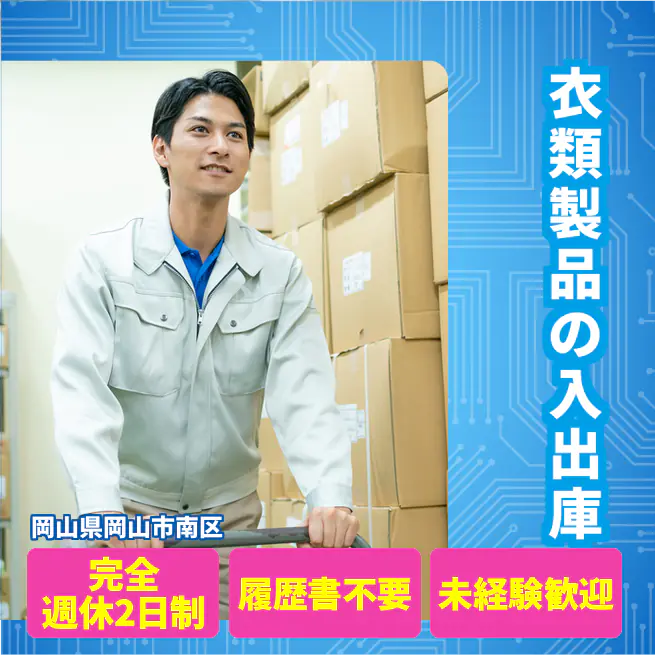 衣類製品の入出庫およびセット作業を担当する業務です。