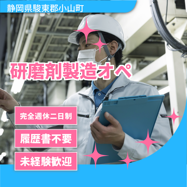 給与詳細 月収例 325,650円 時給例 1,670円 勤務地 静岡県駿東郡小山町 仕事内容 研磨剤の製造、原料の投入、オペレーター業務。
