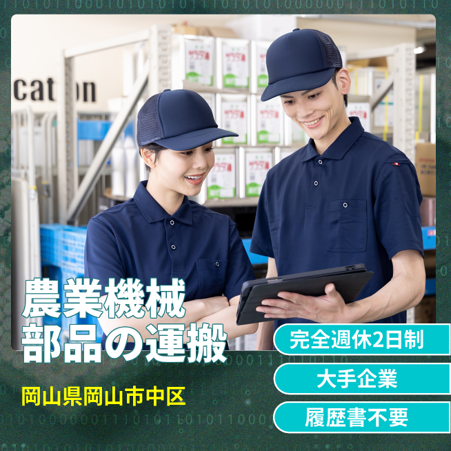 給与詳細 月収例 265,000円 日給例 13,250円 勤務地 岡山県岡山市中区 仕事内容 工場で出来上がった製品の運搬、検査、ピッキング作業