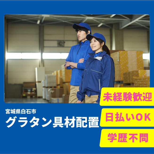 給与詳細 月収例 226,500円 時給例 1,200円 勤務地 宮城県白石市 仕事内容 【業務内容】