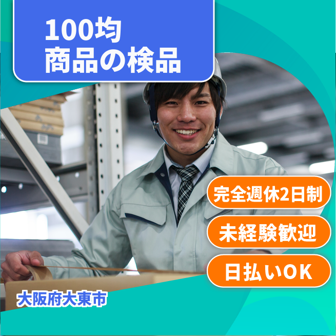 給与詳細 月収例 180,000円 日給例 10,400円 勤務地 大阪府大東市 仕事内容 検品業務
