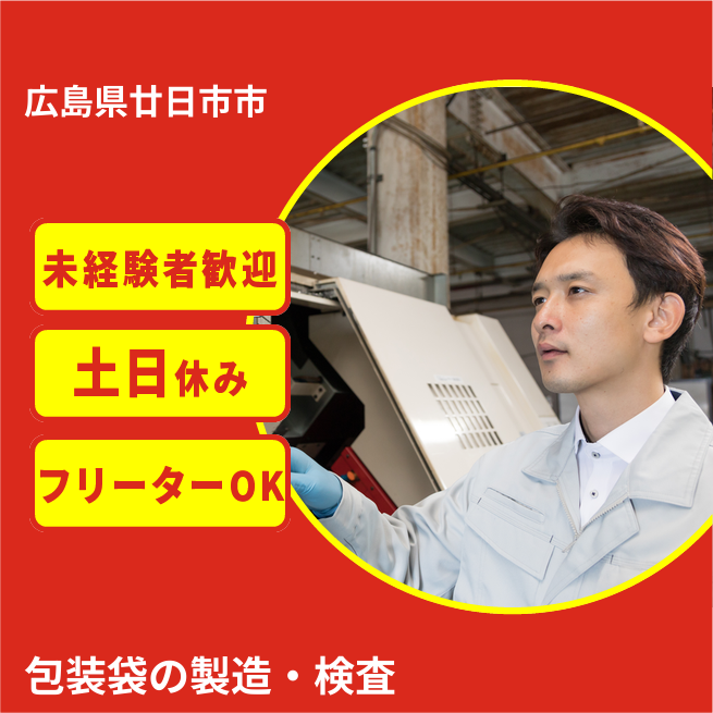 給与詳細 月収例 195,000円 時給例 1,218円 勤務地 広島県廿日市市 仕事内容 ウィルオブ・ワークの正社員として取引先の包装資材工場で勤務いただきます。