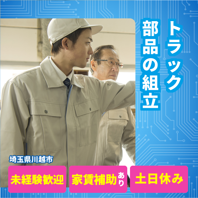 給与詳細 月収例 220,000円 日給例 11,000円 勤務地 埼玉県川越市 仕事内容 ウィルオブ・ワークの正社員として取引先のトラック部品メーカーで勤務いただきます
