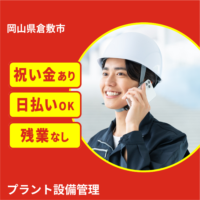 給与詳細 月収例 248,816円 日給例 10,800円 勤務地 岡山県倉敷市 仕事内容 【業務内容】
