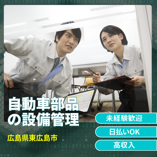 給与詳細 月収例 280,431円 日給例 11,600円 勤務地 広島県東広島市 仕事内容 設備の点検・メンテナンス・清掃その他付随業務