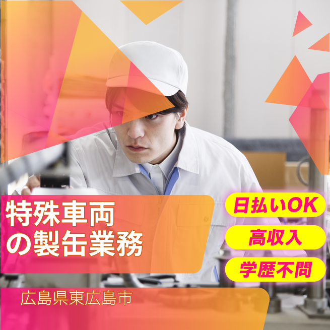 給与詳細 月収例 281,568円 日給例 11,200円 勤務地 広島県東広島市 仕事内容 車両部品の製缶業務等