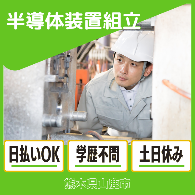 給与詳細 月収例 268,664円 日給例 10,800円 勤務地 熊本県山鹿市 仕事内容 半導体製造装置の組立