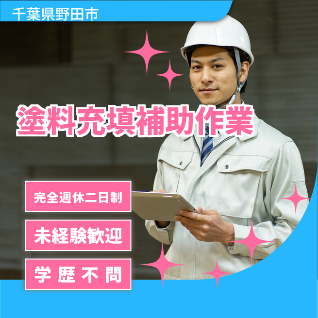 給与詳細 月収例 240,000円 日給例 12,000円 勤務地 千葉県野田市 仕事内容 一斗缶・ドラム缶に塗料を充填する補助作業です。充填された一斗缶は15~20kgとなりますが、運搬は台車を使用します。調合設備の洗浄業務もあります。塗料を取り扱うため、工場内は有機溶剤のニオイがあります。