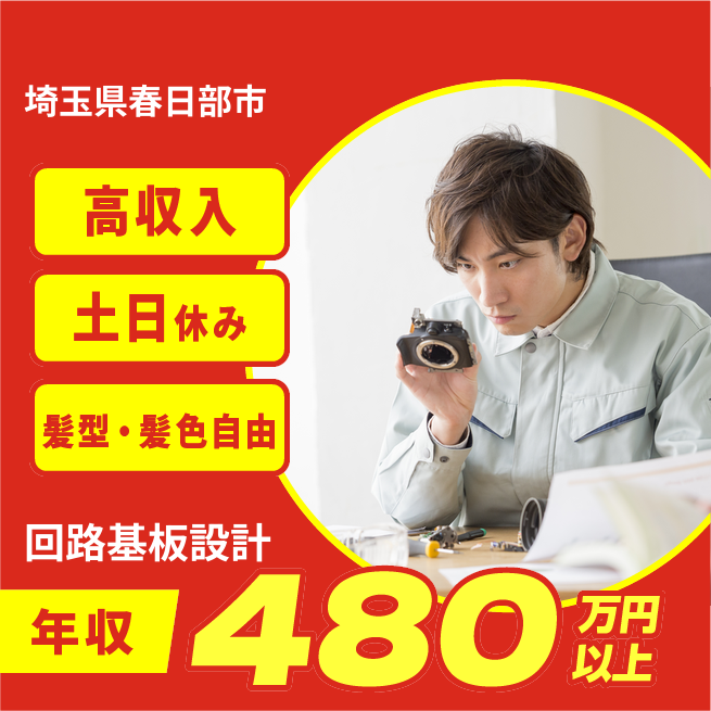 給与詳細 年収例 4,756,752円 月収例 396,396円 勤務地 埼玉県春日部市 仕事内容 ◎電子回路(プリント基板)設計の場合