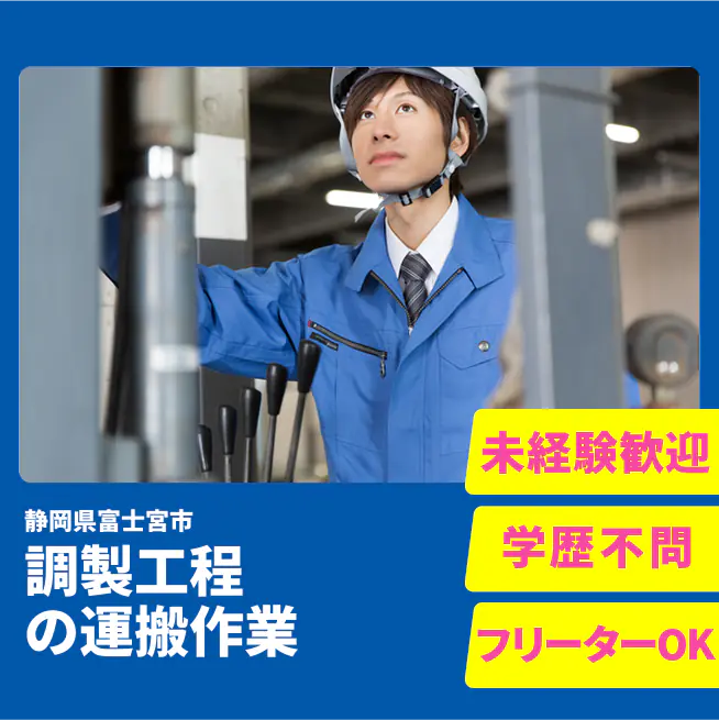 給与詳細 月収例 260,300円 日給例 10,960円 勤務地 静岡県富士宮市 仕事内容 【業務内容】
