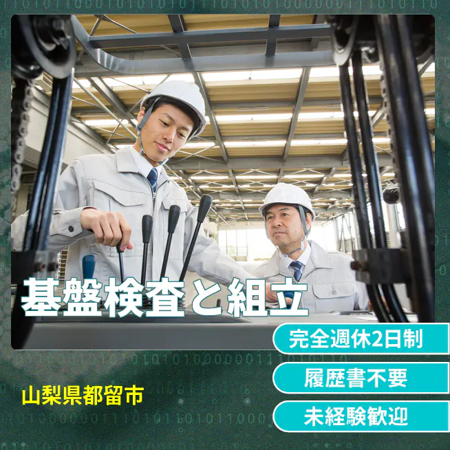 給与詳細 月収例 214,500円 時給例 1,100円 勤務地 山梨県都留市 仕事内容 【業務内容】電子部品やプリント基板の検査および組立作業を行います
