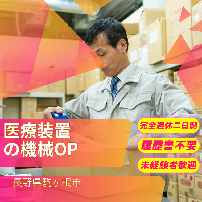 給与詳細 月収例 234,000円 時給例 1,200円 勤務地 長野県駒ヶ根市 仕事内容 クリーンルーム内での機械OP、顕微鏡を使ったはんだ付け作業になります。