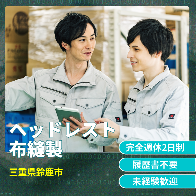 就業場所:全国(派遣先)/就業範囲:派遣先業務全般(詳細は就業条件明示書で明示する) ヘッドレスト布の縫製。工業用ミシンを用いて縫ってもらいます。座りもしくは立ち作業