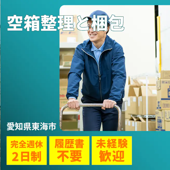 給与詳細 月収例 273,000円 日給例 11,200円 勤務地 愛知県東海市 仕事内容 【業務内容】空箱や製品の仕分け・梱包作業を行う仕事です。