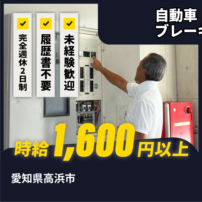 給与詳細 月収例 264,000円 時給例 1,650円 勤務地 愛知県高浜市 仕事内容 自動車ブレーキの加工/組立【組立1名】レコードサイズ(2.3kg~8kg)程のブレーキデスクを機械にセットして回す。ディスク2枚を合わせてゴムで接着する作業。体力必要。2交代、2直3班(4勤2休)あり(選べません)