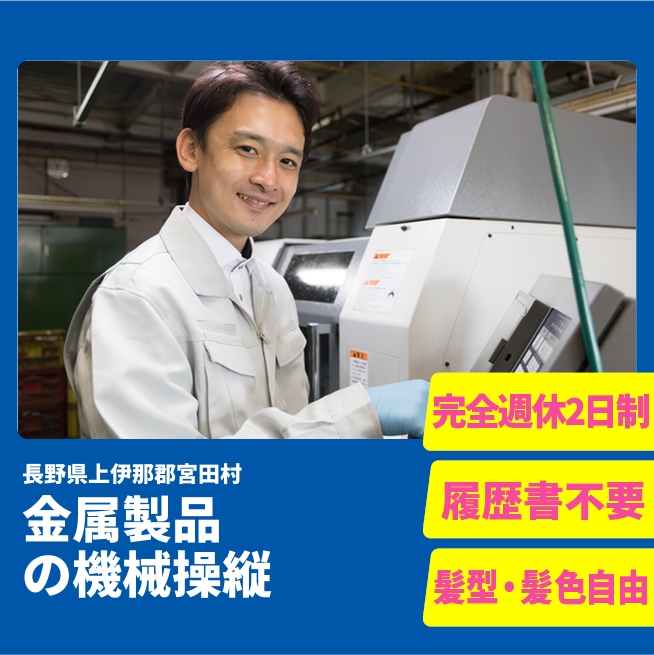 給与詳細 月収例 234,000円 時給例 1,200円 勤務地 長野県上伊那郡宮田村 仕事内容 金属製品の機械オペレーター。