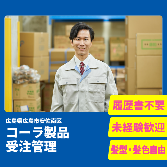 給与詳細 月収例 200,000円 日給例 10,000円 勤務地 広島県広島市安佐南区 仕事内容 【業務内容詳細】パソコン業務:受注データチェック、ピッキングリストとの照合、EOS外受注や欠品等に伴う受注データ追加修正、ピッキングリスト印刷や棚卸しデータ作成処理検品業務:ピッキング製品の検品【取扱製品情報】コカ・コーラ製品