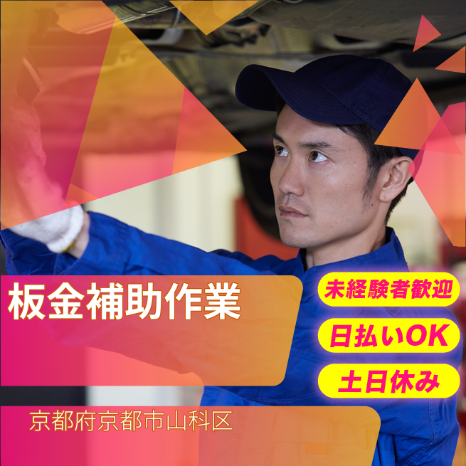 給与詳細 月収例 260,000円 時給例 1,210円 勤務地 京都府京都市山科区 仕事内容 【板金加工・塗装前の補助作業】