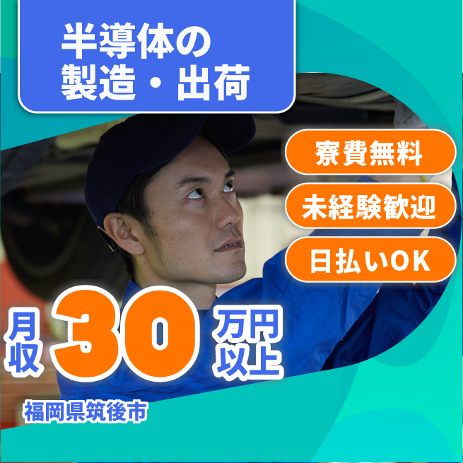 給与詳細 月収例 310,000円 日給例 10,480円 勤務地 福岡県筑後市 仕事内容 【電子部品加工・出荷】