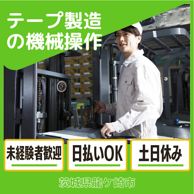 - ビニールや布のテープを製造するための自動加工機を操作する
