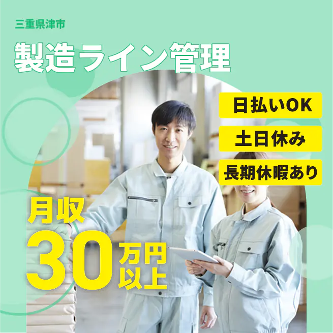 ・受動喫煙対策あり、詳細は面接時にお伝えします。 公開日 2025年10月01日 【製造ラインの管理】