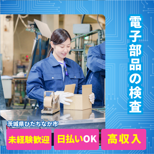 給与詳細 月収例 240,000円 日給例 10,800円 勤務地 茨城県ひたちなか市 仕事内容 【電子部品の検査】