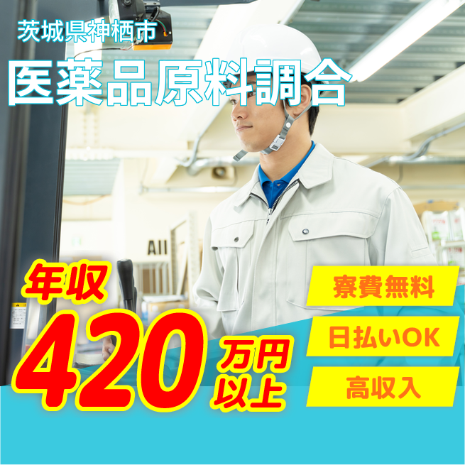 給与詳細 年収例 4,200,000円 月収例 350,000円 勤務地 茨城県神栖市 仕事内容 【医薬品原料の調合・運搬】