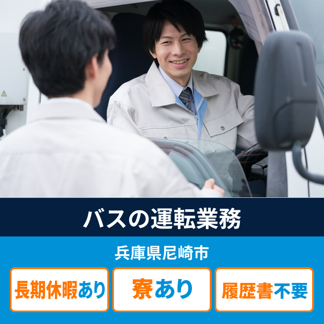 給与詳細 月収例 290,000円 日給例 10,500円 勤務地 兵庫県尼崎市 仕事内容 【バスの運転手】