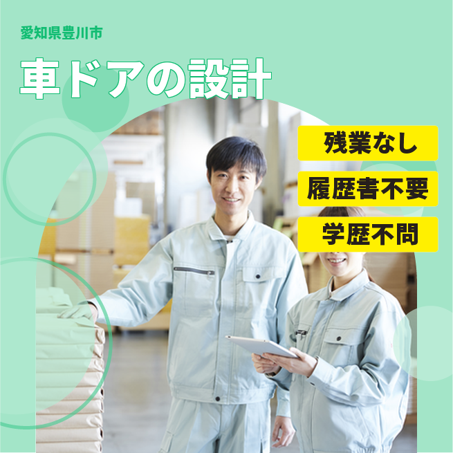 給与詳細 月収例 250,000円 日給例 12,500円 勤務地 愛知県豊川市 仕事内容 【大手自動車メーカーの設計】