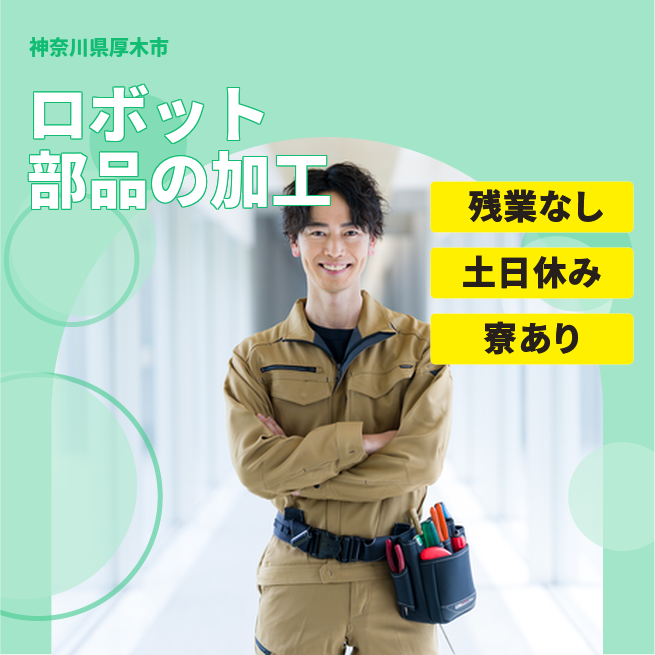 給与詳細 月収例 225,000円 日給例 11,250円 勤務地 神奈川県厚木市 仕事内容 【ロボット部品の加工】