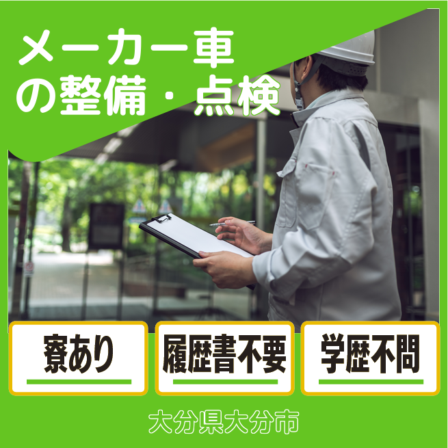 給与詳細 月収例 202,500円 時給例 1,125円 勤務地 大分県大分市 仕事内容 【メーカー車の整備】