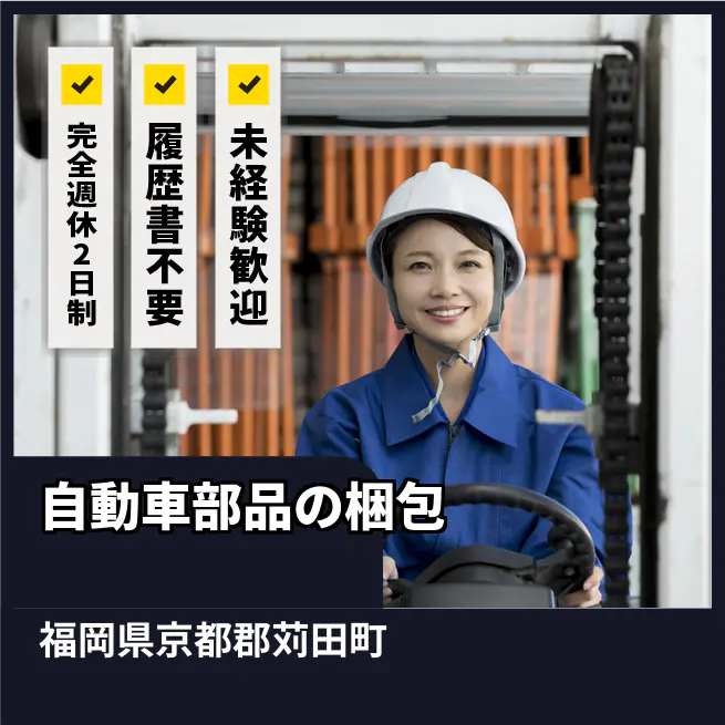 様々な自動車部品のピッキング、梱包業務を行っていただきます。
