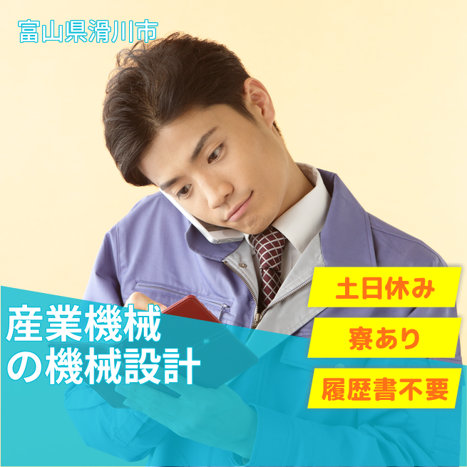 給与詳細 月収例 219,000円 日給例 10,950円 勤務地 富山県滑川市 仕事内容 【マシニングセンタの機械設計】