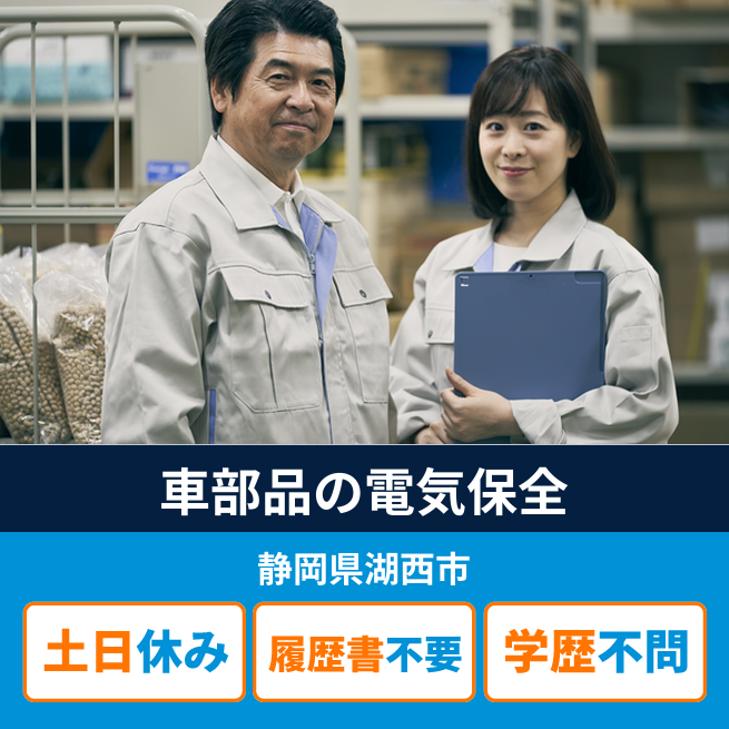 ★時給例 1300円 交通費 支給なし 応募の流れ 本ページ内<応募する>ボタンより、必要項目をご入力の上、ご応募ください。 勤務地 【勤務地】静岡県湖西市- 勤務時間 【勤務地】【日勤】