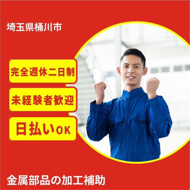 給与詳細 月収例 270,000円 日給例 12,000円 勤務地 埼玉県桶川市 仕事内容 【航空機部品の加工、補助業務】