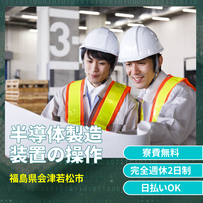 給与詳細 月収例 254,000円 日給例 11,600円 勤務地 福島県会津若松市 仕事内容 【クリーンルーム内での半導体前工程製造関連業務】