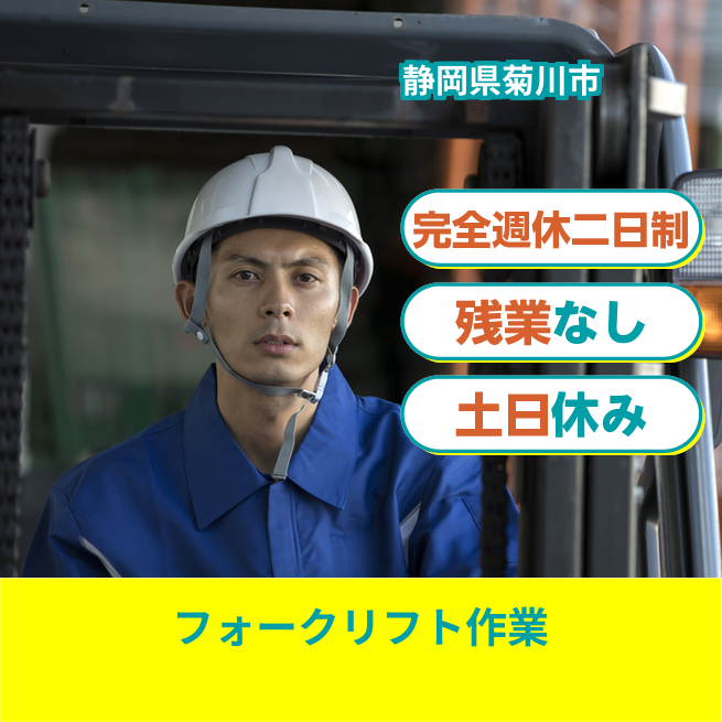 給与詳細 月収例 240,000円 日給例 12,000円 勤務地 静岡県菊川市 仕事内容 1トンカウンターフォークリフトを使用