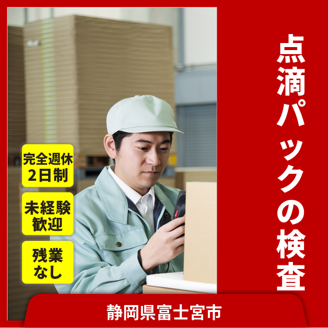 給与詳細 月収例 220,500円 日給例 11,025円 勤務地 静岡県富士宮市 仕事内容 医薬品(点滴パック)の製造