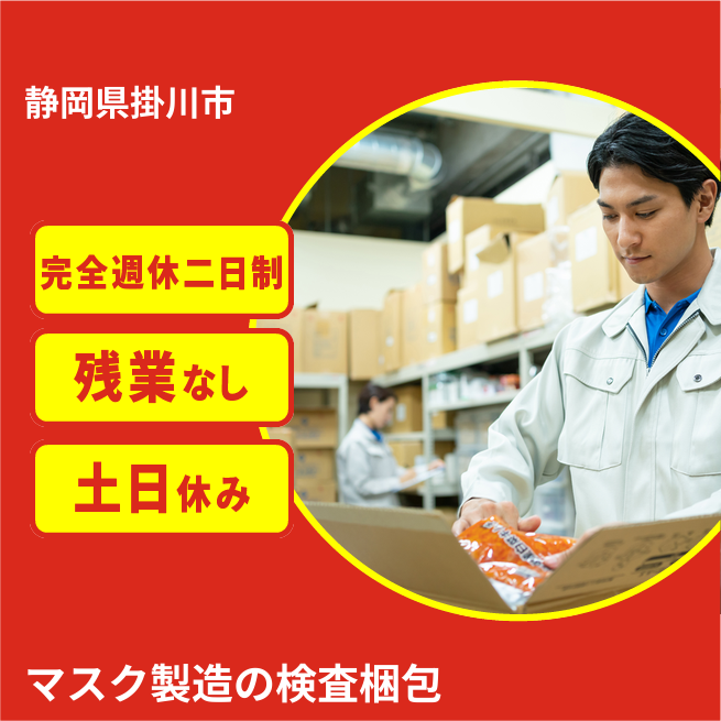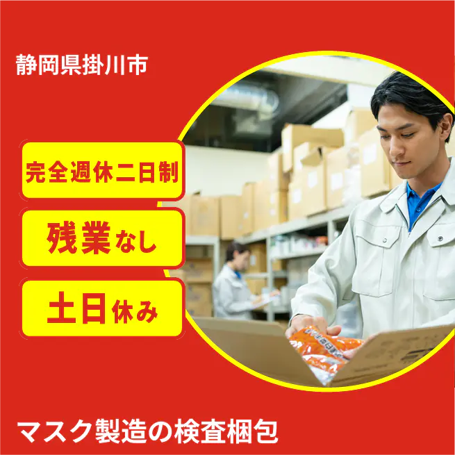 時給例:1240円 応募の流れ 本ページ内<応募する>ボタンより、必要項目をご入力の上、ご応募ください。 勤務地 【勤務地】静岡県掛川市- 勤務時間 【勤務地】8:00~16:30 福利厚生 残業手当 公開日 2025年01月01日 部屋タイプ 単身者向けの1Rやカップル・家族向け2Kのルーム、ペットOKなど幅広いニーズに合わせてご用意しております! 家具・備品 テレビ・冷蔵庫・エアコンなどの家電を完備!すぐに新生活が始められます!※寮による その他 カップル・家族寮:単身寮のみ