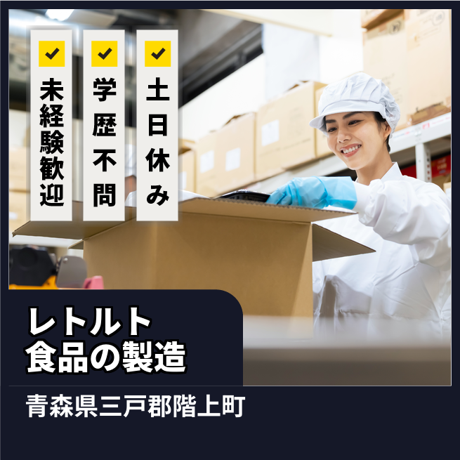 給与詳細 月収例 180,000円 時給例 1,125円 勤務地 青森県三戸郡階上町 仕事内容 パスタやスープなど様々なレトルト食品の製造をしている職場です。主に生産ラインのオペレーション業務で、クリーンルーム内作業になります。