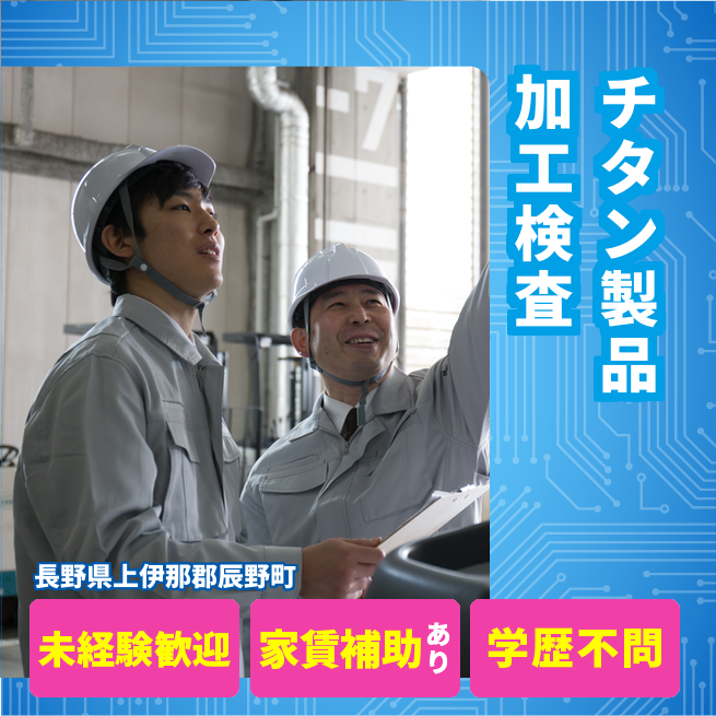給与詳細 月収例 300,835円 日給例 10,750円 勤務地 長野県上伊那郡辰野町 仕事内容 加工:チタン合金を専用の装置にセット。