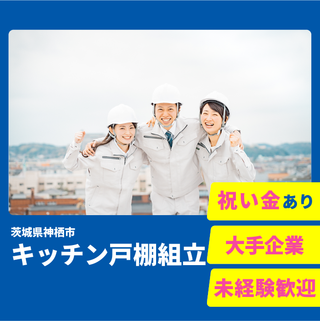 給与詳細 月収例 209,035円 時給例 1,206円 勤務地 茨城県神栖市 仕事内容 住宅用システムキッチンを製造している会社になり、システムキッチンの戸棚の組み立て工程での作業になります。
