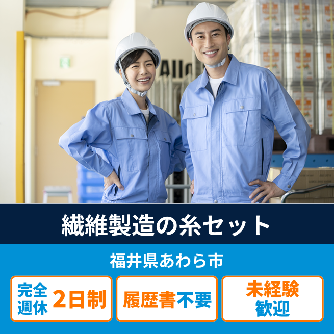 給与詳細 月収例 190,000円 時給例 1,200円 勤務地 福井県あわら市 仕事内容 【業務内容】衣類用生地の製造に関わる機械操作と糸管理