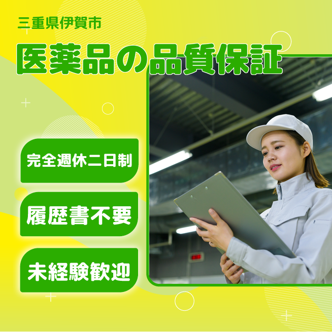 給与詳細 月収例 230,000円 日給例 11,500円 勤務地 三重県伊賀市 仕事内容 ≪敷地内に保育園有!福利厚生充実の品質保証業務≫