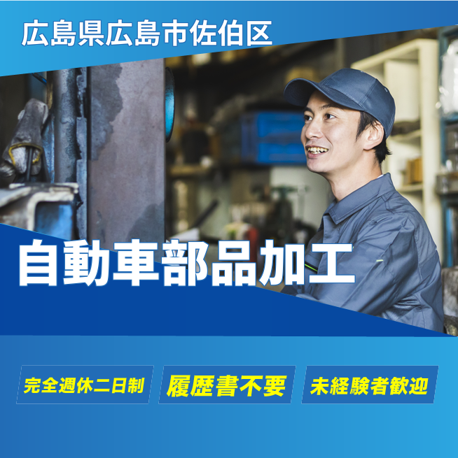 給与詳細 月収例 300,000円 日給例 15,000円 勤務地 広島県広島市佐伯区 仕事内容 自動車部品(ドア、マフラー)部品をプレス機械にセット&取り出し、