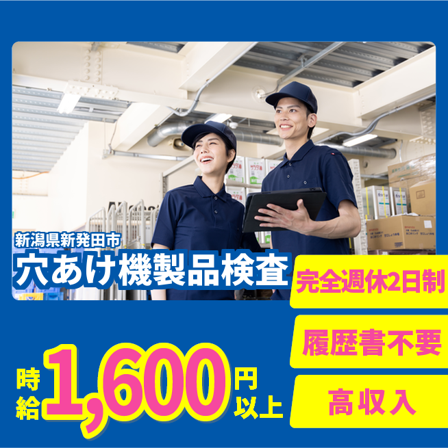 給与詳細 年収例 5,031,000円 月収例 419,250円 勤務地 新潟県新発田市 仕事内容 【業務内容】ドリル穴あけ機の製品検査とデータ管理