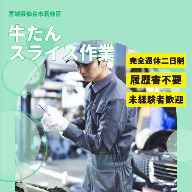 安心の週休二日【牛たんスライス作業】