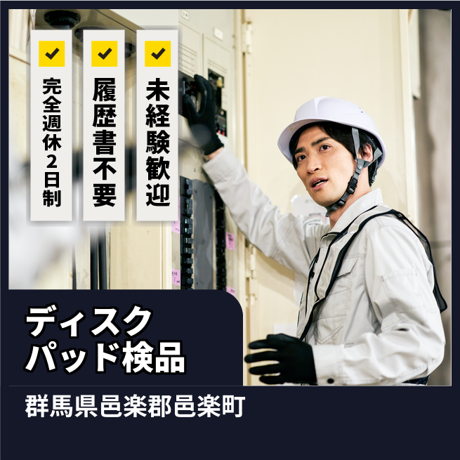 給与詳細 月収例 240,000円 日給例 12,000円 勤務地 群馬県邑楽郡邑楽町 仕事内容 【業務内容】自動車ブレーキ部品の検査と梱包